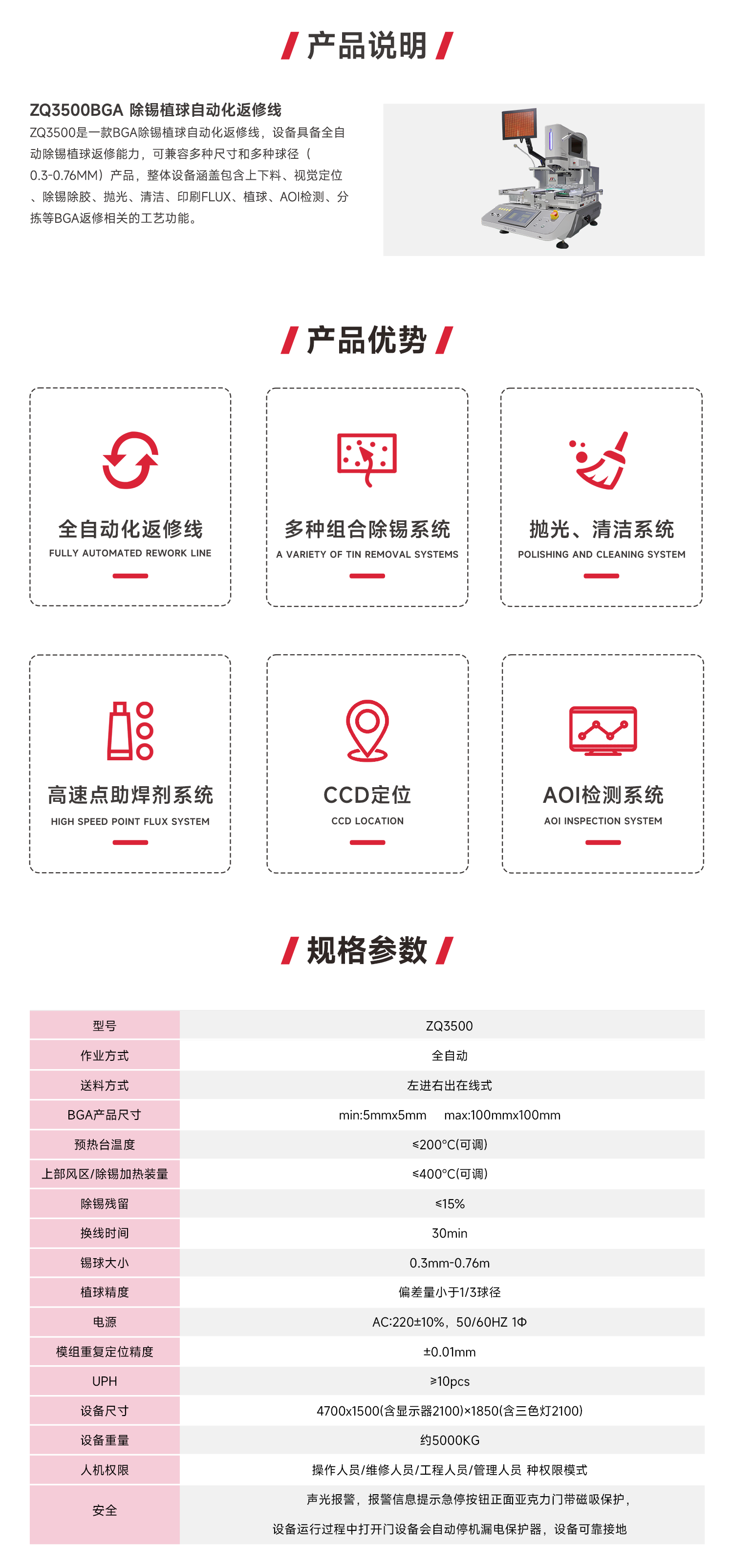 ZQ3500BGA 除锡植球自动化返修线